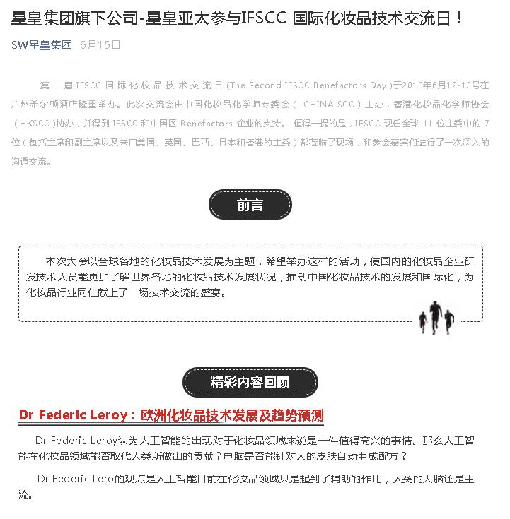 星皇集團旗下公司-星皇亞太參與IFSCC 國際化妝品技術交流日